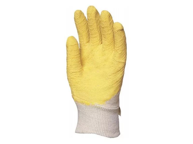 Pracovné ochranné rukavice krepové latexové, odolné proti prerezaniu, protišmykové, citrónovo žlté