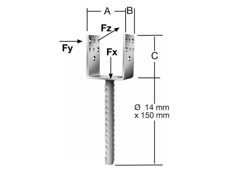 VORMANN Stĺpové nosné železo je možné zabetónovať 91 x 60 x 102 mm