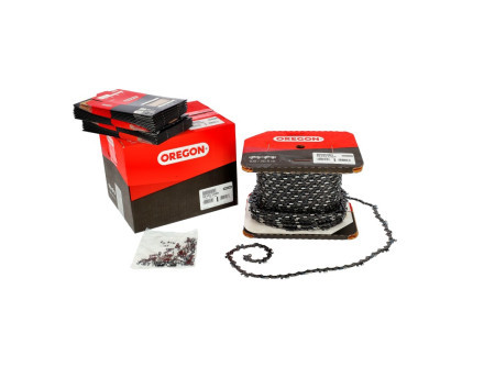 Oregon gyártmányú fűrészlánc, 100 lábas tekercsben.