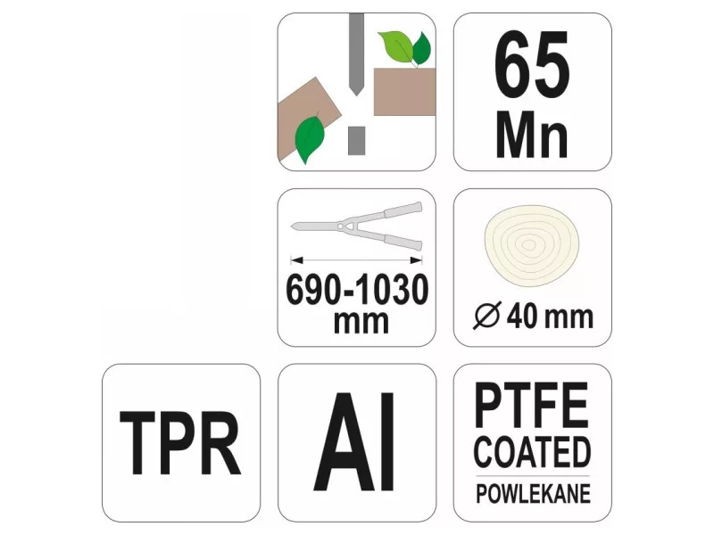 - čepeľ z mangánovej ocele (65 Mn) pre vysokú odolnosť proti opotrebovaniu. zuby na čepeli uľahčujú rezanie suchých konárov