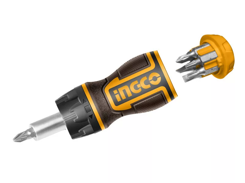 Rozsah dodávky: 1 ks ratchetový skrutkovač, 8 ks bitov, v krabici na ponuku