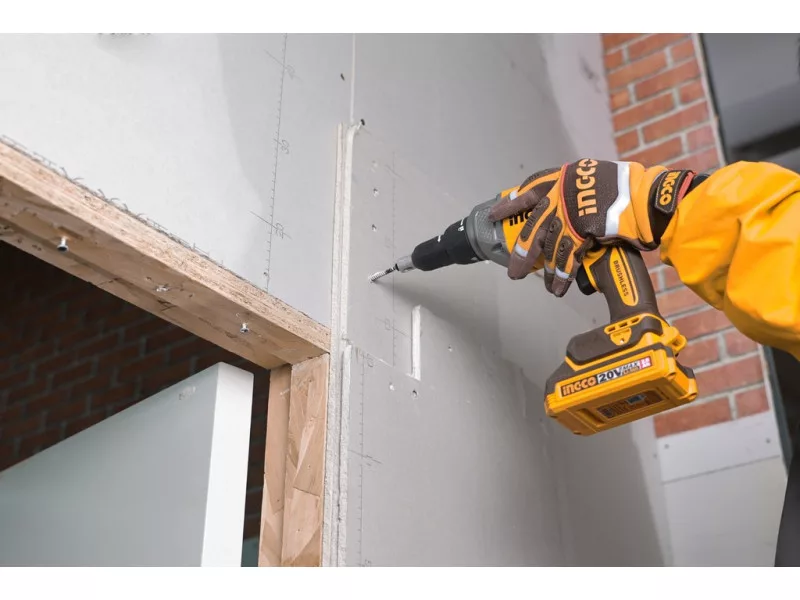 INGCO akumulátorový skrutkovač pre sadrokartón je určený špeciálne pre suchú výstavbu, kde je potrebné rýchle, presné a opakovateľné skrutkovanie. Motor bez uhlikových kefiek zaručuje vysokú efektivitu a dlhú životnosť, pričom poskytuje stabilný výkon aj pri intenzívnom používaní.