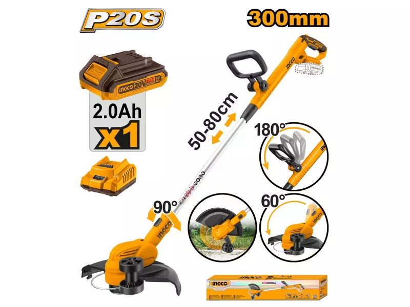 INGCO Bezdrôtový kosač na okraje 300 mm 20 V (1 x 2,0 Ah batéria + nabíjačka)