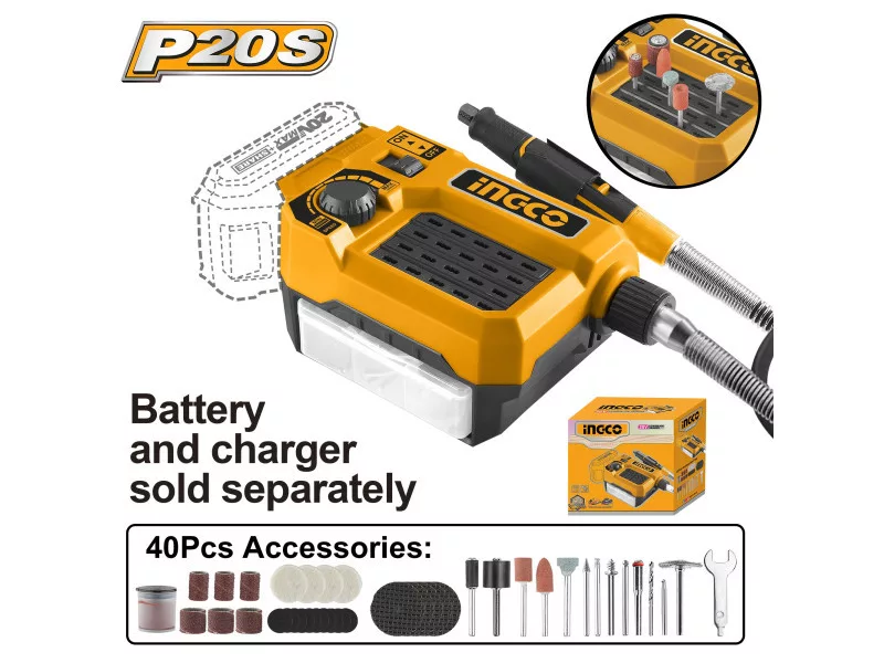 Obsah balenia: Bez batérie a nabíjačky, 1 ks flexibilný predlžovací kábel, 40 ks príslušenstva, 1 sada uhlíkových kefiek, v kartónovej krabici.