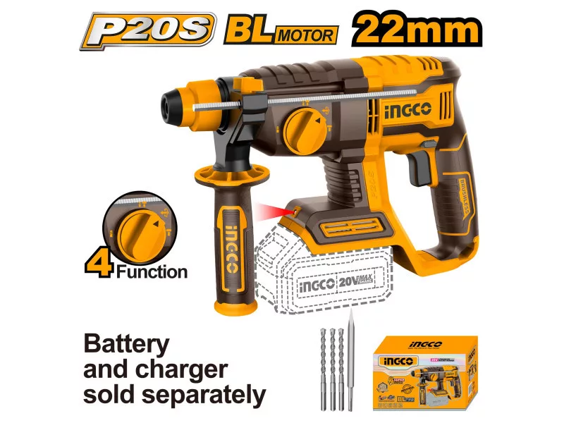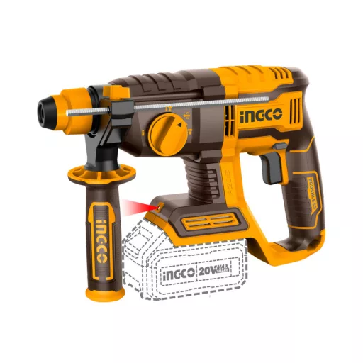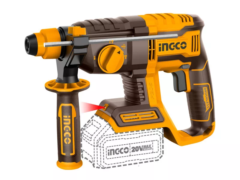 INGCO Akumulátorové kombinované kladivo 2,0 J SDS-Plus bezuhlíkové 20 V (bez akumulátora a nabíjačky)