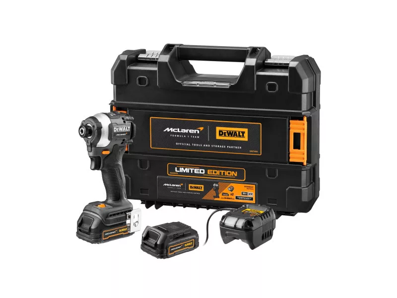 DEWALT/Mclaren Akumulátorový rázový uťahovák 18 V (2 x 1,7 Ah batéria + nabíjačka + TSTAK) DCF85ME2GT