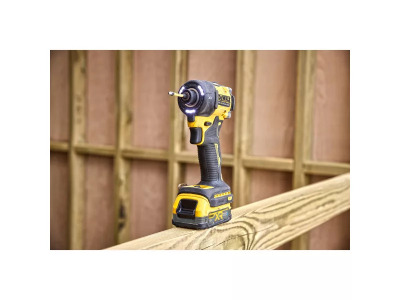 Náš najtichší 18V XR Impact Driver má hydraulický mechanizmus naplnený olejom, ktorý zaisťuje presný výkon pri menšom výskyte vibrácií a zvyšuje odolnosť náradia. DCF860 dáva výstupný krútiaci moment 56 Nm v kompaktnom púzdre o dĺžke 100 milimetrov, ktoré zodpovedá výkonnosti upevnenia DCF850 pri podstatne nižšom hluku. Medzi ďalšie funkcie patrí prepínač s 3 režimami pre vylepšené ovládanie. Superjasný 9-LED kruh vyžaruje svetelný tok 82 lumenov a je vybavený režimom baterkovej svietidla.