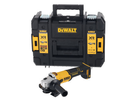 DEWALT Akkus sarokcsiszoló 125 mm 18 V szénkefe nélküli (akku + töltő nélkül, TSTAK)