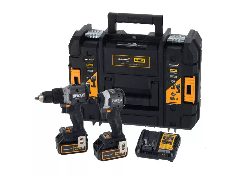 DEWALT/McLaren Nabíjateľný set 18 V (DCD85M + DCF85M + TSTAK + 2 x 5,0 Ah baterka + nabíjačka)