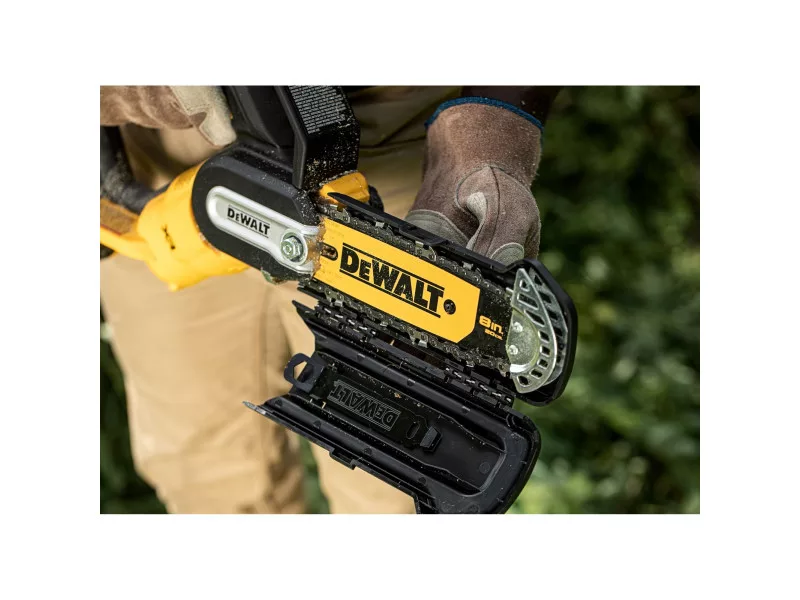 Ľahká a kompaktná rezačka s reťazou s akumulátorom XR 18 V disponuje vysoko účinným motorom bez uhlíkových kefiek. Maximálne predlžuje dobu prevádzky a životnosť motora až na 70 rezov na jedno nabitie. Rezačka s reťazou váži iba 2,08 kg, je o 61% ľahšia a 3x kompaktnejšia. Znižuje únavu pri rezaní, strihaní a orezávaní. Použite ju na orezávanie konárov padnutých stromov, rezanie drevených alebo konárových balíkov, ako aj na uspokojenie denných potrieb orezávania. Kompaktný dizajn umožňuje ľahký prístup na tesné miesta. Integrovaný špičkový ochranný prvok zaisťuje stabilitu pri rezaní. Vestavnený skrutkovač na rýchle a jednoduché napnutie reťaze. Je súčasťou systému akumulátora 18V XR.