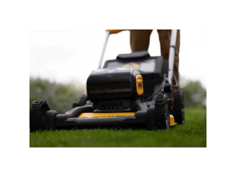 Tichý, efektívny chod bez emisií plynu a priameho výstupu, kosačka DEWALT 2 x 18 V so samohybným pohonom má dvojitý kryt pre 2 x 18 V XR 8,0 Ah batériu a 53 cm vysokoefektívnu palubu na maximalizáciu energetickej účinnosti a predĺženie prevádzkového času. Vybaňovaný zátkač pre prírodné hnojenie trávnika, dve čepele pre efektívnejšie mulčovanie a 67-litrový sieťový textilný vak pre krajšiu estetiku trávnika. Ergonomický dizajn zahŕňa jednoduchú funkciu nastavenia výšky a jednoduchú, jednoduchú skladaciu rukoväť, ktorá zaručuje skvelú manévrovateľnosť. Zatiaľ čo inovatívne používateľské rozhranie zobrazuje stav nabitia a meranie záťaže pomáha predĺžiť prevádzkový čas tým, že signalizuje, keď kosačka používa vyšší výkon na kosbu hrubšej trávy. Je súčasťou 18V XR batériového systému. SKU jednotka, batérie a nabíjačka sa predávajú samostatne.