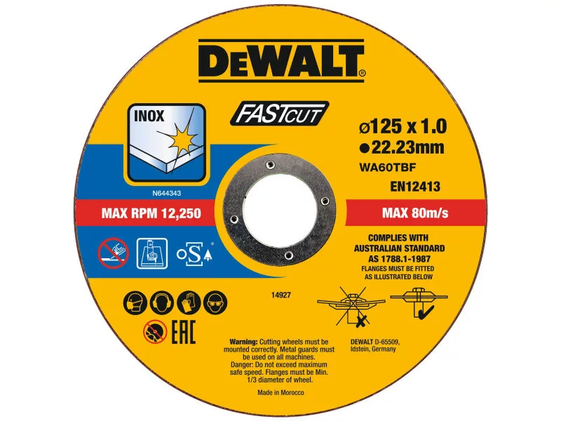 DEWALT Brúsny kotúč na kov 125 x 1,0 x 22,2 mm inox WA60TBF v balení vedra (100 ks)