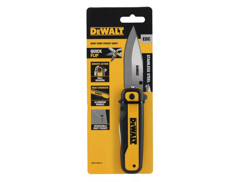 Sklopný zsebný nôž DEWALT® ponúka širokú škálu rezných aplikácií. Ergonomický dizajn zabezpečuje pohodlné nosenie aj pri ťažkých prácach, okrem toho je vybavený ľahko otvárateľným mechanizmom. Rýchly prístup k čepeľi zabezpečuje jednoduchý pohyb zápästia. Pre dlhú životnosť a pohodlie je navrhnutý s tenkou kovovou rukoväťou a poskytuje vysoký výkon pre mnohé náročné úlohy.