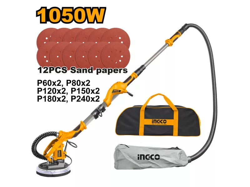 A DWS10501 Ingco falcsiszoló zsiráf egy kiváló minőségű elektromos szerszám, amely gipszkarton, mennyezetek és falak glettanyaggal bevont felületeinek száraz csiszolására lett tervezve, mind beltéri, mind kültéri használatra. A készülék ideális festékrétegek, ragasztómaradványok és laza vakolat eltávolítására is. Az alábbi jellemzőkkel rendelkezik: