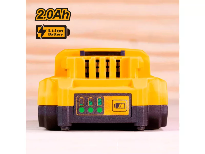 Úspora peňazí, ochrana životného prostredia a flexibilita. Systém riadenia batérie znamená max. bezpečnosť, optimálny výkon, prevádzkovú dobu + životnosť. Sloboda bezdrôtového fungovania: Žiadne zamotané káble a slobodné vykonávanie práce. Vysokokvalitné články Li-Ion znamenajú absenciu pamäťového efektu, nízky samovybitie a vysoký, konštantný výkon. Aktuálnu úroveň nabitia zobrazuje trojstupňový LED displej. Puzdro je chránené proti prachu, korózii a mechanickému poškodeniu.