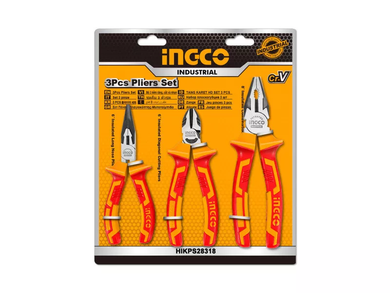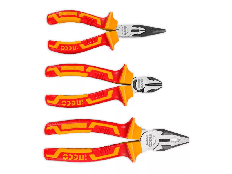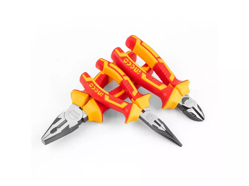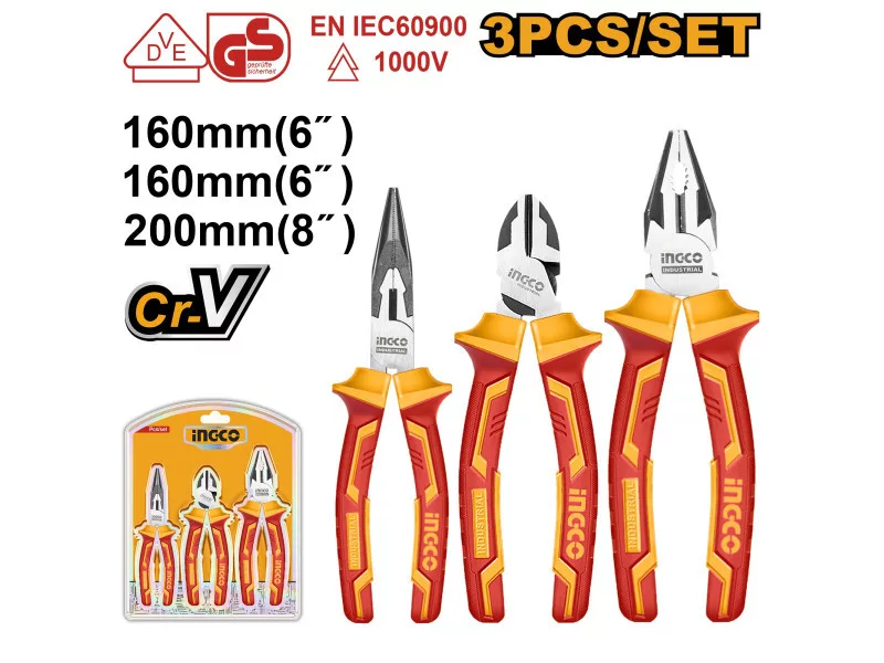 Obsah dodávky: 1 ks izolované kombinované kliešte CrV, 1 ks izolované dlhé kliešte CrV, 1 ks izolované bočné kliešte CrV, v blistri