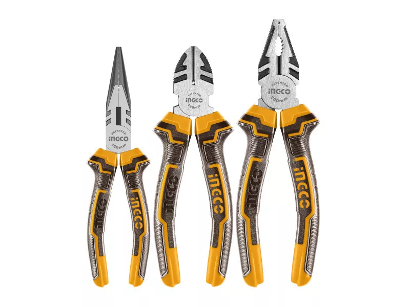Obsah balenia: 1 ks kombinované kliešte, 1 ks dlhé kliešte, 1 ks bočné kliešte, v blisteri