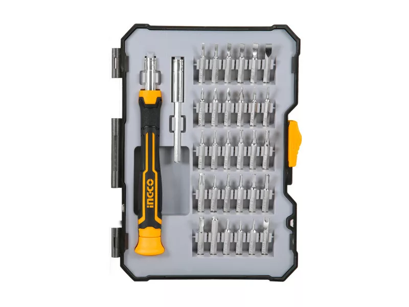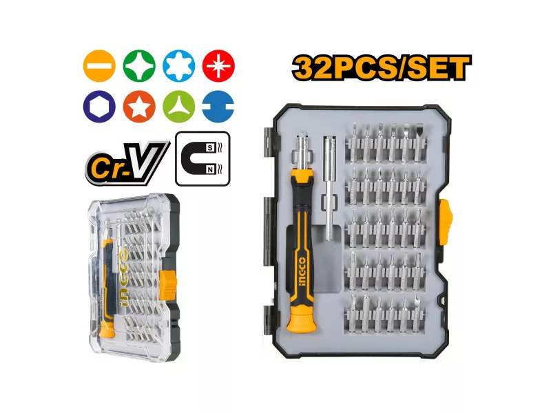Rozsah dodávky: 1 ks skrutkovač, 1 ks držiak bitu, 30 ks bitov CrV, v kufri