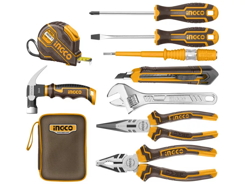 Egy klasszikus, 9 darabos kéziszerszám-készlet, amely otthoni dekorációhoz, játékjavításhoz stb. alkalmas.