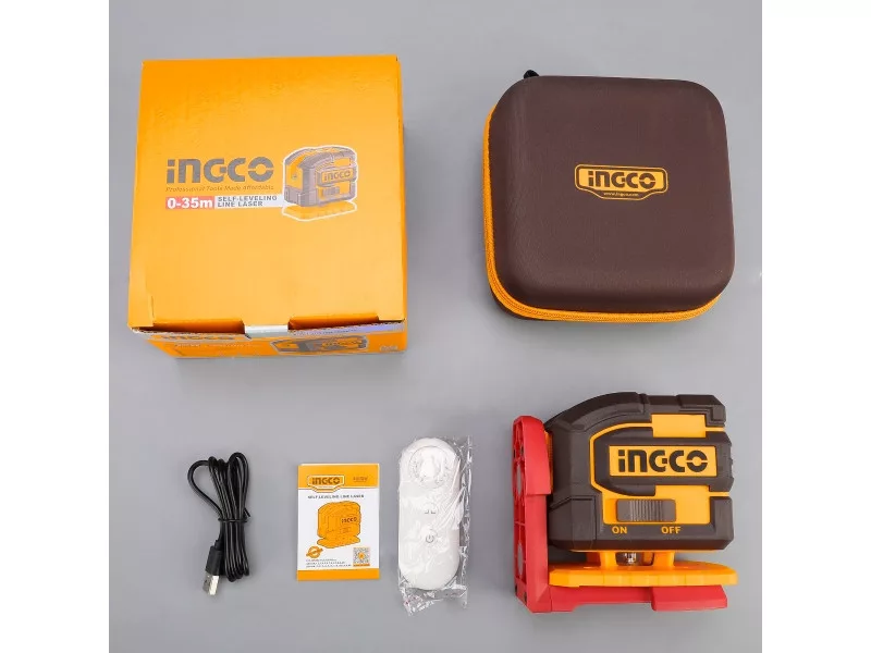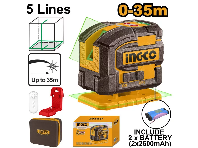 INGCO akumulátorový 5D križový laser 0–35 m, zelený, s diaľkovým ovládaním