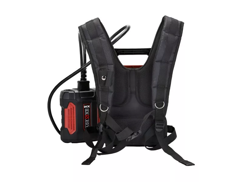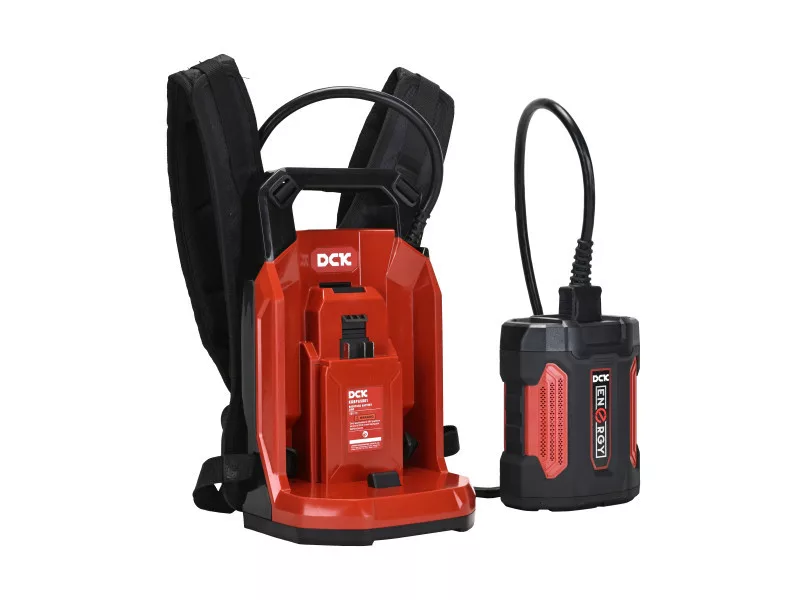 DCK Backpack Battery Link je vysokokapacitný, ergonomický batériový systém v batohu, ktorý zaručuje dlhú prevádzkovú dobu a stálu energetickú záťaž pre 58V nástroje značky DCK. Špeciálne navrhnutý pre profesionálne použitie, výrazne znižuje hmotnosť jednotlivých nástrojov, zvyšuje pohodlie pri práci a minimalizuje únavu pri starostlivosti o veľké plochy.