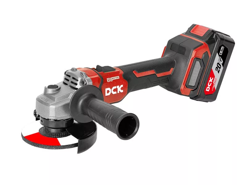DCK Odľahčená akumulátorová uhlová brúska 125 mm bez uhlíkových kefiek 20 V (2 x 4,0 Ah akumulátory + nabíjačka)