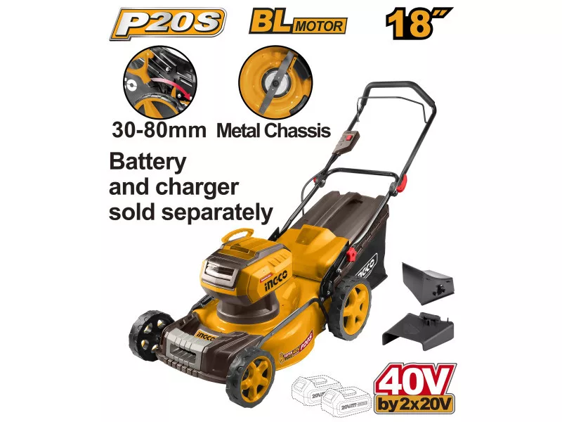 INGCO Akumulátorová kosačka 460 mm 2 x 20 V bezuhlíková (bez batérie a nabíjačky)