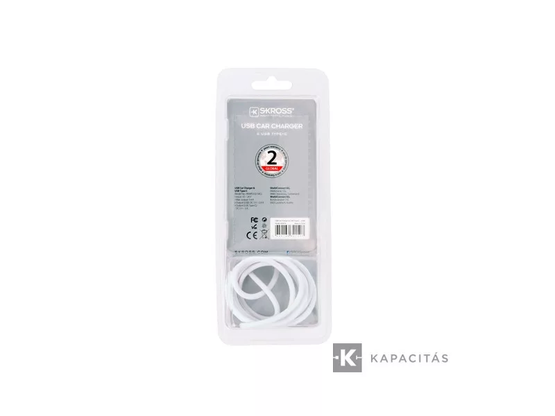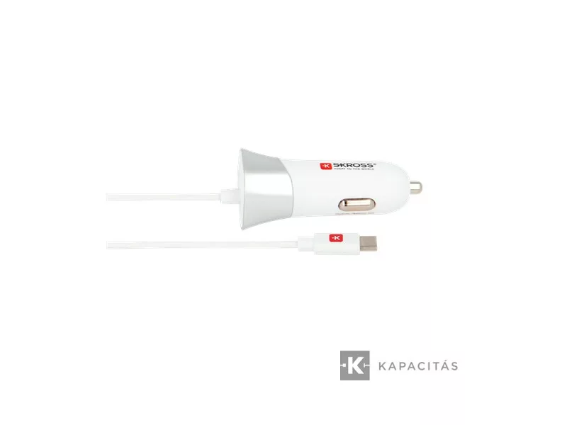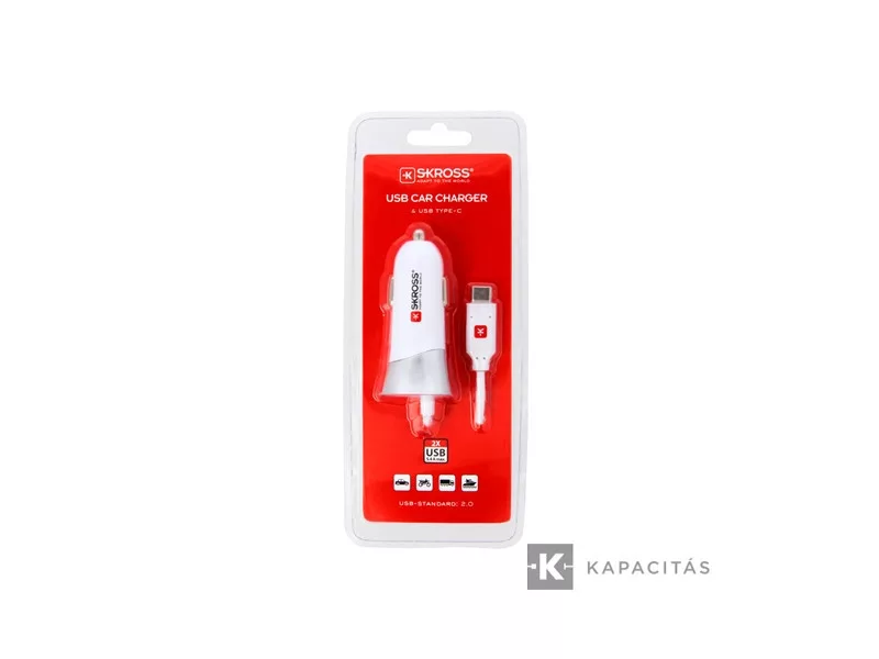 SKROSS auto USB nabíjačka, s USB-C káblom, plus USB-A konektorom. Max výstup 3,4 A