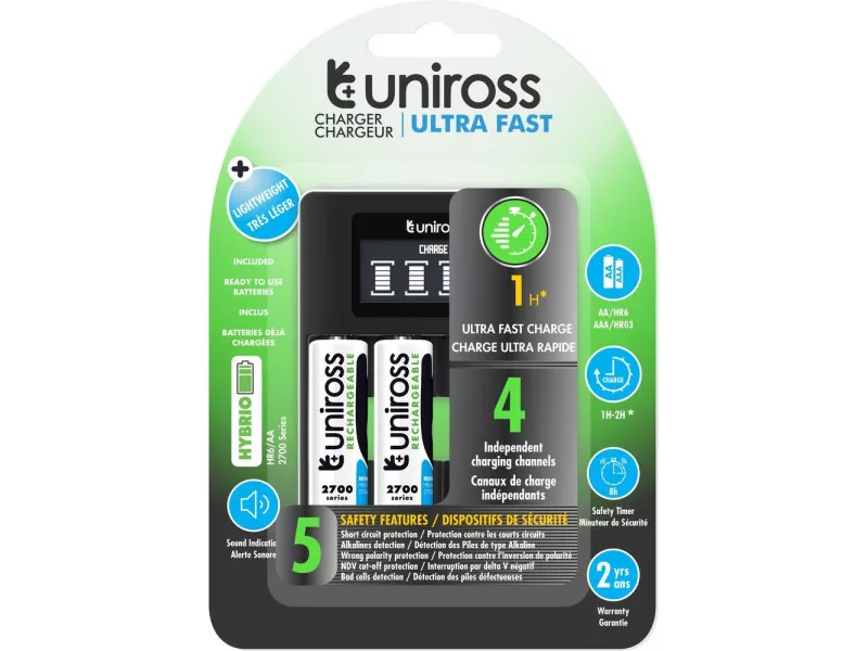 Procesor UNIROSS rýchlonabíjačka + 4 AA/tužkové batérie 1,2 V 2700 mAh
