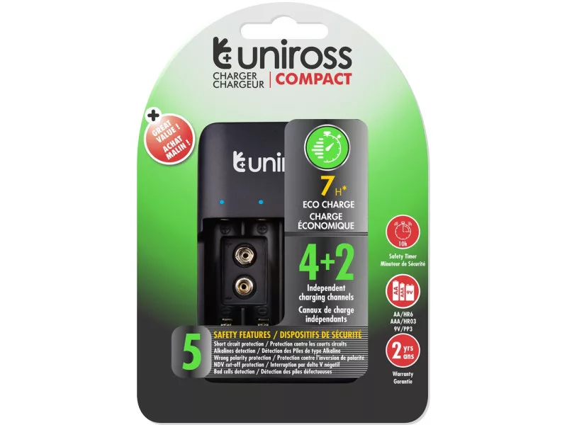 Táto všestranná nabíjačka batérií je navrhnutá s modernou technológiou Nikel-Metal Hydrid (NiMH), takže je kompatibilná s širokou škálou veľkostí batérií, vrátane AA, AAA a 9 V Block batérií.