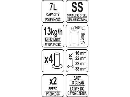 Celkom z nerezovej ocele, ľahko ovládateľný a čistiteľný plnič klobás a jelít, ktorý plne spĺňa prísne medzinárodné hygienické predpisy a je vhodný rovnako pre profesionálne aj domáce použitie.