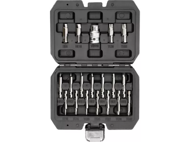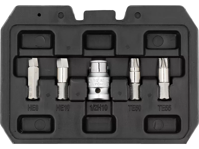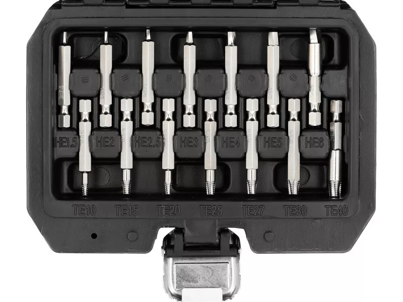 - 7 šesťhranných skrutkovačov Torx 1/4" (50 mm): TE10, TE15, TE20, TE25, TE27, TE30, TE40