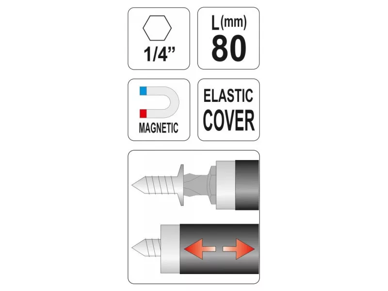 YATO držiak bitov 80 mm 1/4" magnetický (s flexibilným krytom)