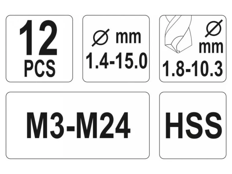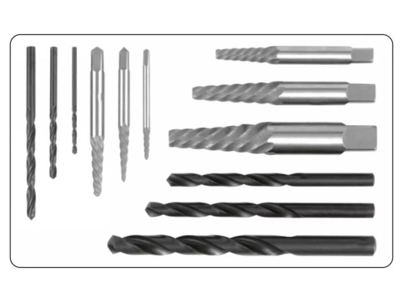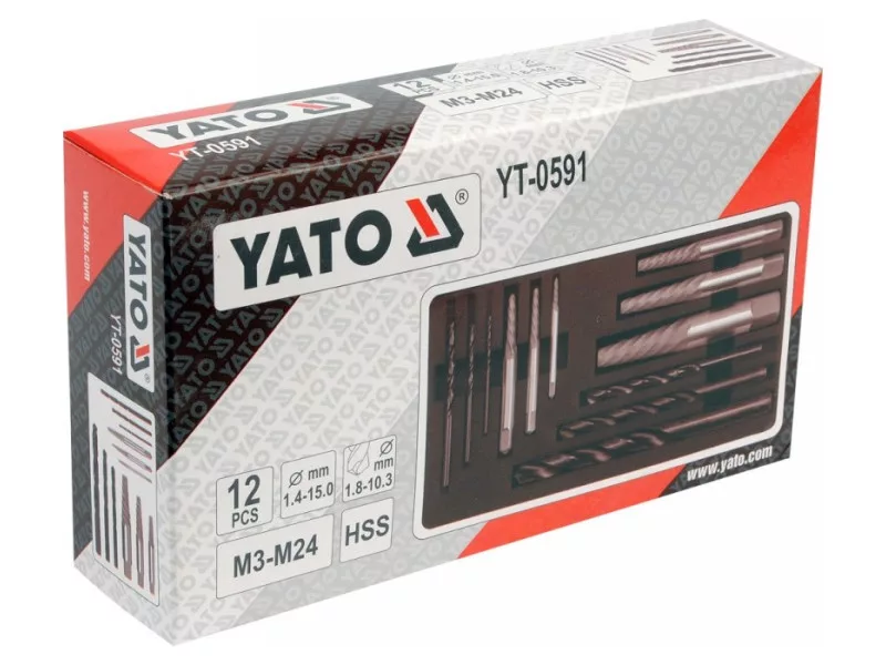 Odstraňovače skrutiek na zlomené skrutky a vrtáky HSS do kovu, sada 12 kusov od spoločnosti Yato.