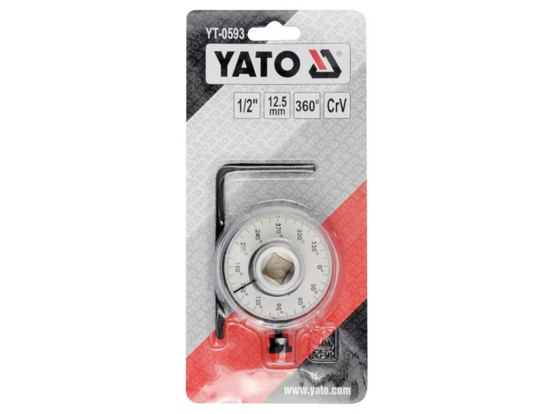 Uhlomer sa používa na uťahovanie hláv s určitým uhlom (konečné uťahovanie skrutiek a matíc s určitým napätím meraním uhla natočenia) - pracuje s 1/2 kľúčom - ľahké a jednoduché použitie - uhlová stupnica v krokoch po 2 stupňoch - uzavretý plastovým krytom - gombík z chróm-vanádiovej ocele - stupnica 0 - 360 stupňov