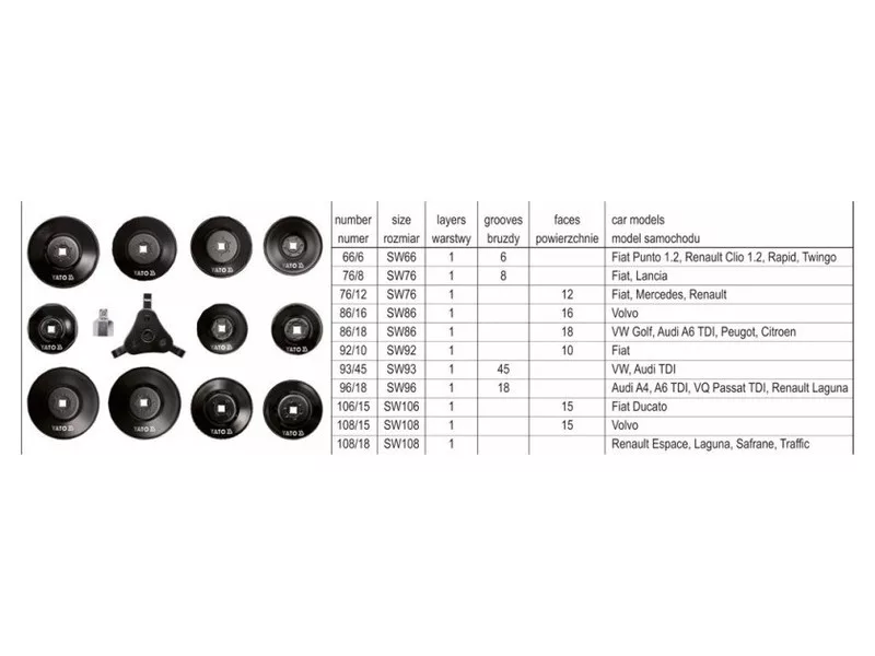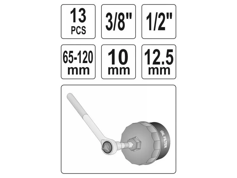 YATO súprava na odstránenie olejového filtra 13 kusov 3/8"