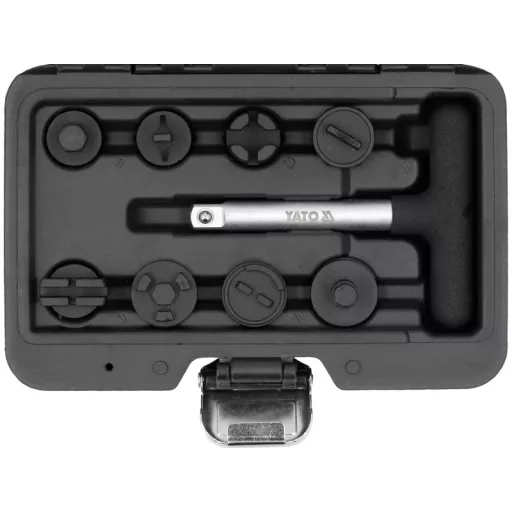 Sada kľúčov určená na bezpečné odskrutkovanie a naskrutkovanie plastových olejových zátok / na vozidlách Audi, BMW, Dodge, Ford, Lincoln, Mercedes a VW. Kľúč zabezpečuje správny uťahovací moment, aby sa zátky nezavadzali v závitoch olejovej vane. Zvládne 8 typov zátok / na vozidlách Audi, BMW, Dodge, Ford, Lincoln, Mercedes a VW.