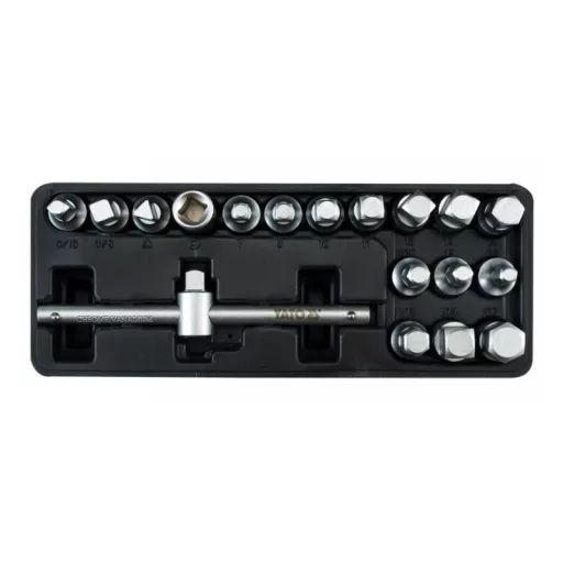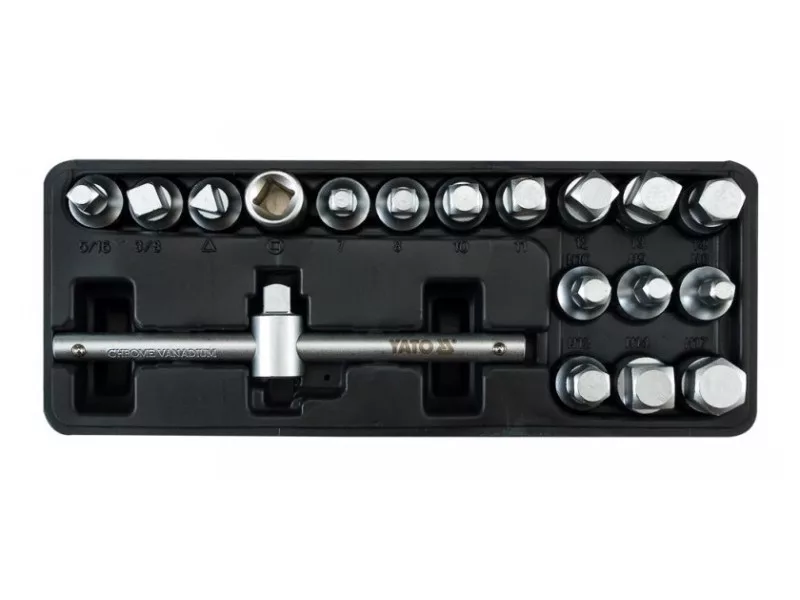 Sada kľúčov na vypúšťanie oleja YATO 18 kusov 5/16"-3/8", 8mm, 10mm, 7-14mm, 10mm, 8-17mm 3/8"C