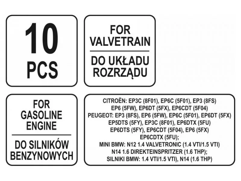 YATO Control upevňovacia sada 10 dielov (benzín) Peugeot Citroën BMW Mini