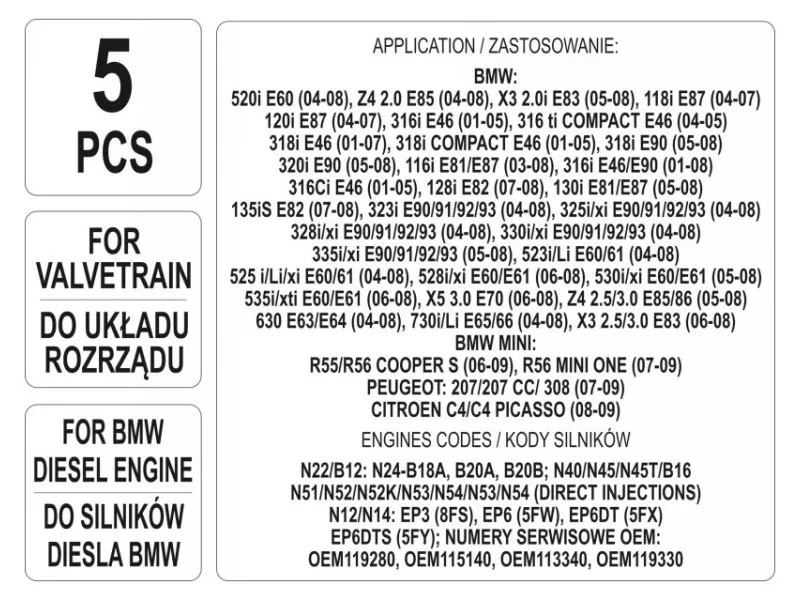 - obsahuje nastavovací nástroj GMP, nástroj na vačkový hriadeľ, napínací čap valca a poistnú skrutku