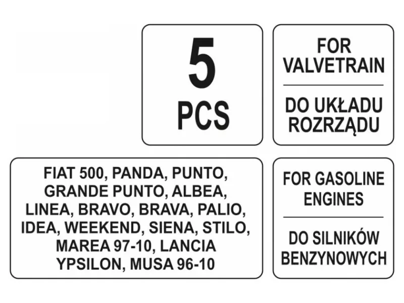 Súprava blokovania rozvodov pre vozidlá Fiat a Lancia. Obsahuje 5 komponentov.