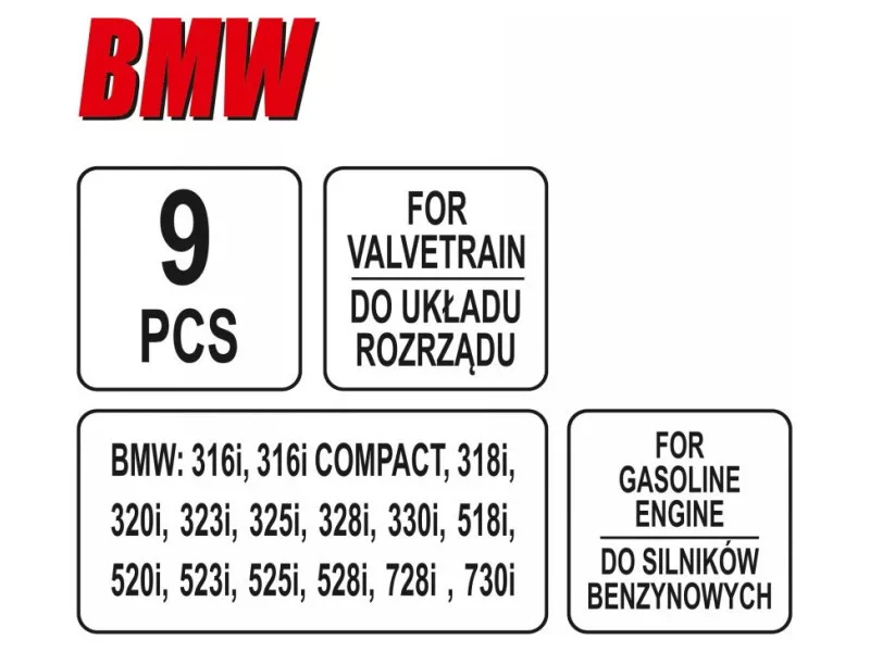 | Nastavte obsah | nástroj na nastavenie vačkového hriadeľa, zariadenie na nastavenie ozubených kolies, zariadenie na predpínanie rozvodovej reťaze, čap na uzamknutie napínača, |