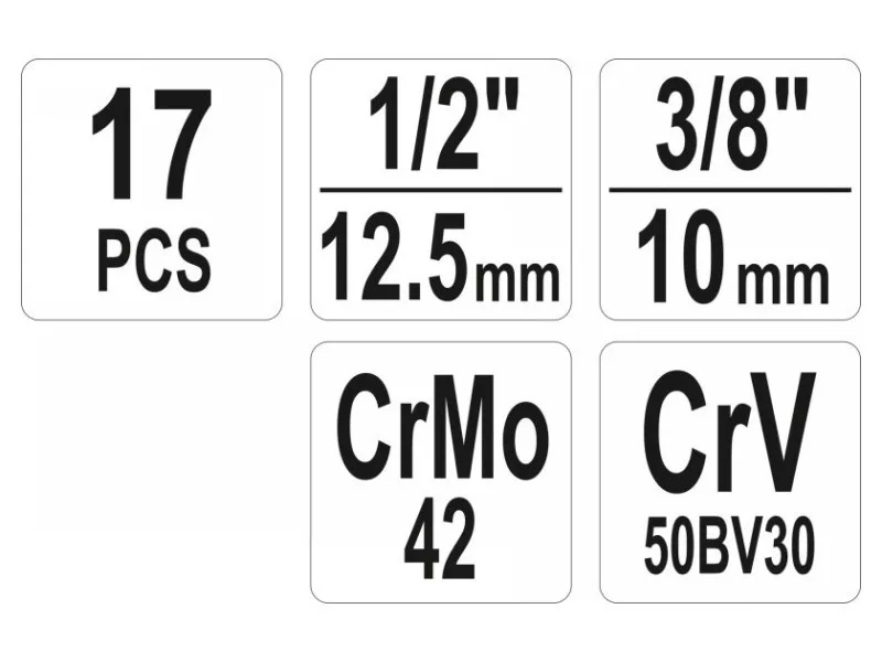 Univerzálna 17-dielna súprava skrutkovačov určená na odstraňovanie skrutiek a zásuviek. Odporúča sa pre mechanické a automobilové servisy. Komponenty vyrobené z vysoko kvalitnej CrMo a CrV ocele