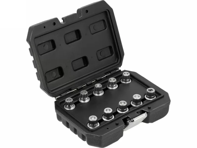 Súprava nástavcov na poistné skrutky pre vozidlá značky BMW. Určená na použitie v profesionálnych auto dielniach a pneuservisoch.