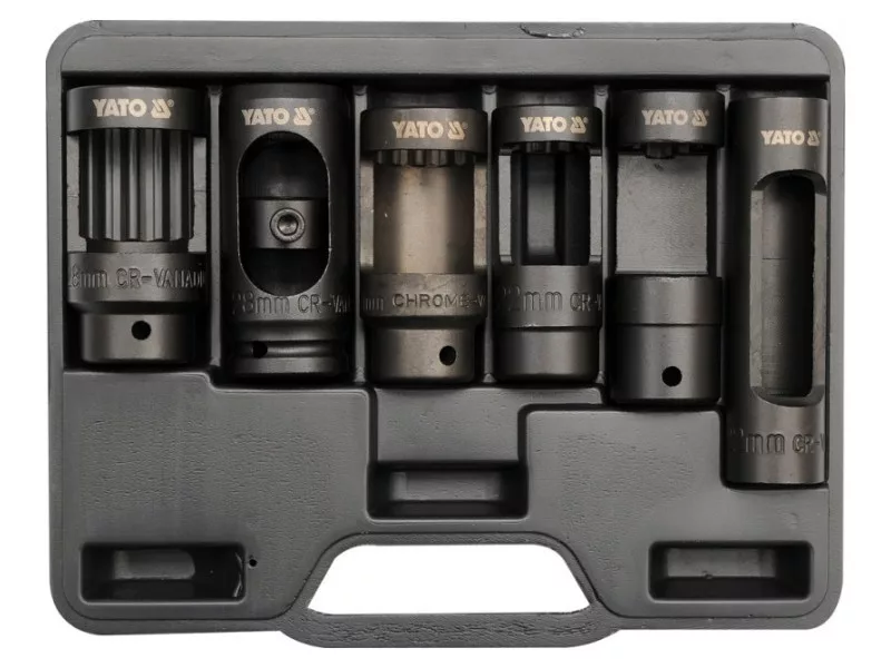 Sada profesionálnych nástrčiek pre vstrekovače vznetových motorov. Zásuvky navrhnuté pre najťažšie podmienky pri striedavom zaťažení. Sú vybavené systémom AS-DRIVE, ktorý chráni odskrutkované vstrekovače pred poškodením. - 21 x 90 mm - 22 x 78 mm - 22 x 110 mm - 27 x 78 mm - 28 x 78 mm - 28 x 83 mm
