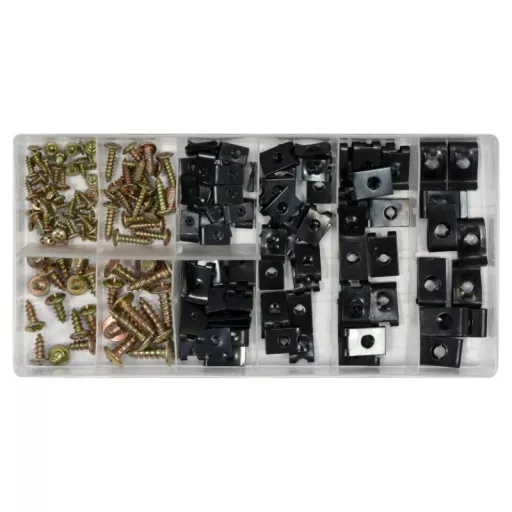 Sada 170 skrutiek a podložiek do karosérie. Sada obsahuje skrutky a podložky s rozmermi od M3x8 mm do M6x20 mm. Celá súprava je uložená v praktickom triediacom boxe.