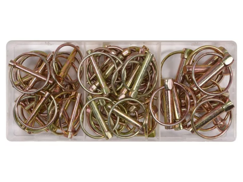 Sada 50 kusov poľnohospodárskych bezpečnostných koliesok s uzamykacím kolieskom. Sada obsahuje veľkosti od 4,5 x 36 mm do 11,0 x 45 mm. Celá súprava je uložená v praktickom triediacom boxe.