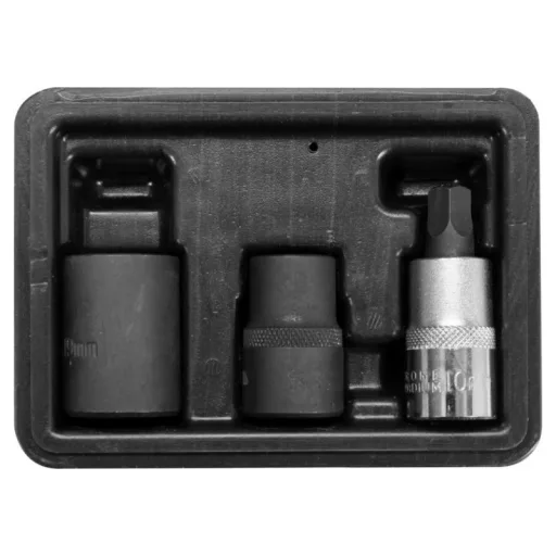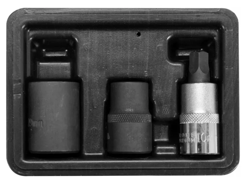 Profesionálna sada 3 nástrčiek na servis brzdových systémov Bendix a Girling. Umožňuje demontáž a výmenu brzdových strmeňov na vozidlách rôznych značiek: Ford, Smart, Opel, Citroen, Peugeot, Renault.