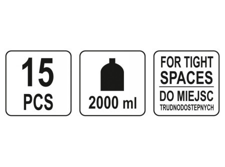- dodávka obsahuje: nálevku s kapacitou 2 L, 180° nastaviteľný koniec, 2-dielne rameno a 12 adaptérov, ktoré sa montujú na miesto plniacej krytky