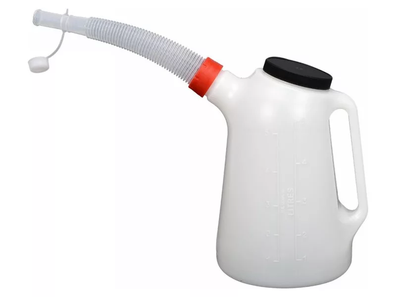 • Vyrobená z odolného PE plastu odolného voči tekutinám s praktickým, flexibilným lievikom a skrutkovacím vekom.